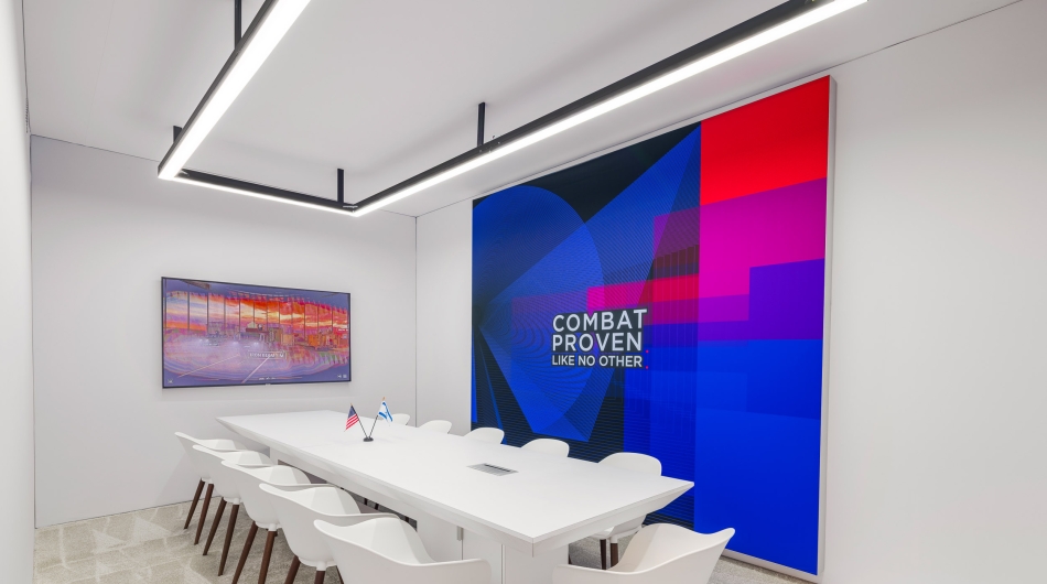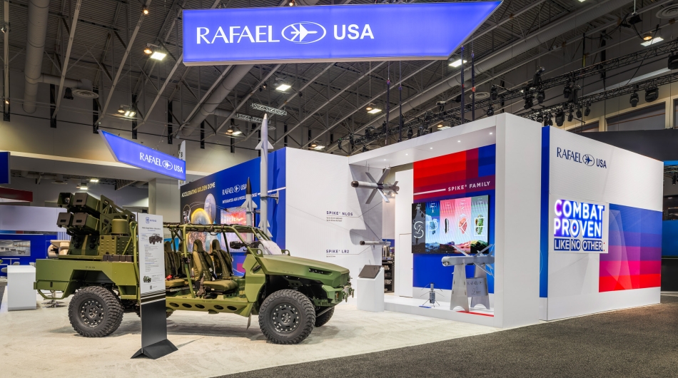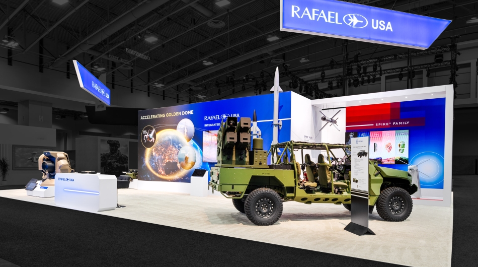 Rafael sought an exhibit environment capable of representing the depth and scale of its advanced defence technologies to senior military leaders, program executives, and acquisition authorities. As a stevensE3 client for more than 25 years, the objective was to support the presentation of evolving weapons and defence systems across multiple show cycles and program generations. The booth needed to accommodate full-scale platforms, clearly communicate system differentiation as capabilities matured, and provide appropriate spaces for both open discussion and closed-door program briefings within a single, cohesive environment.
