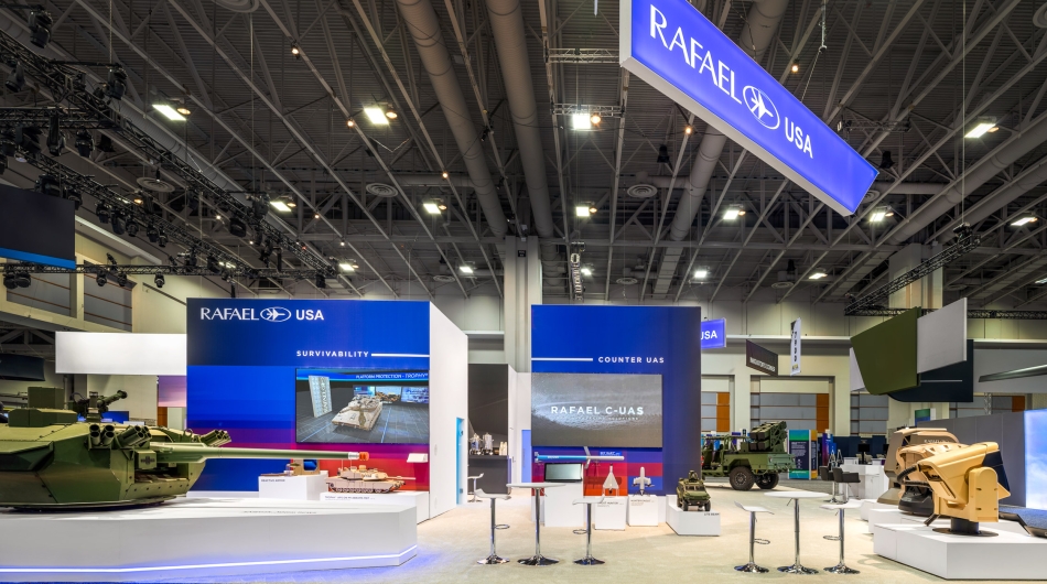 Rafael sought an exhibit environment capable of representing the depth and scale of its advanced defence technologies to senior military leaders, program executives, and acquisition authorities. As a stevensE3 client for more than 25 years, the objective was to support the presentation of evolving weapons and defence systems across multiple show cycles and program generations. The booth needed to accommodate full-scale platforms, clearly communicate system differentiation as capabilities matured, and provide appropriate spaces for both open discussion and closed-door program briefings within a single, cohesive environment.